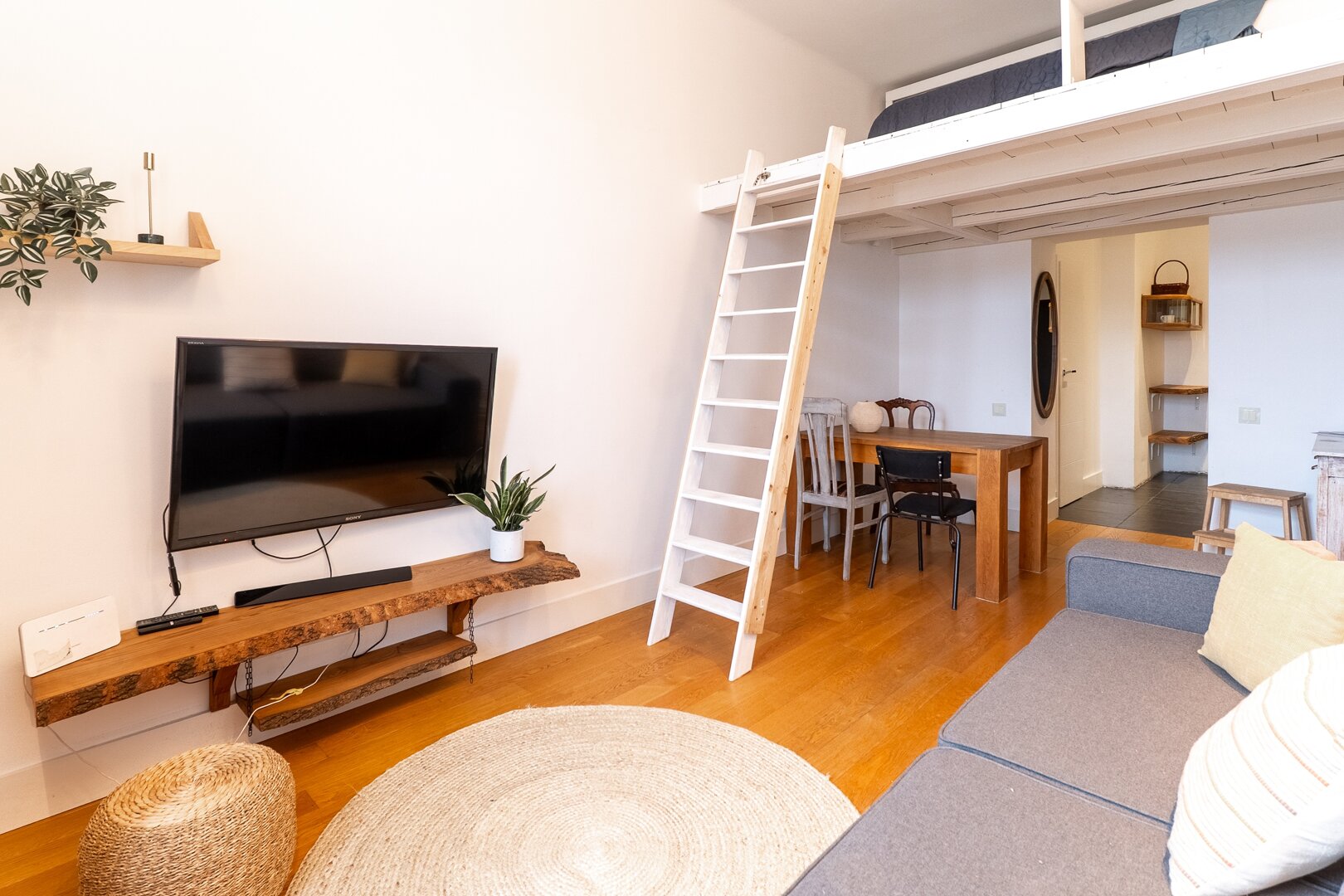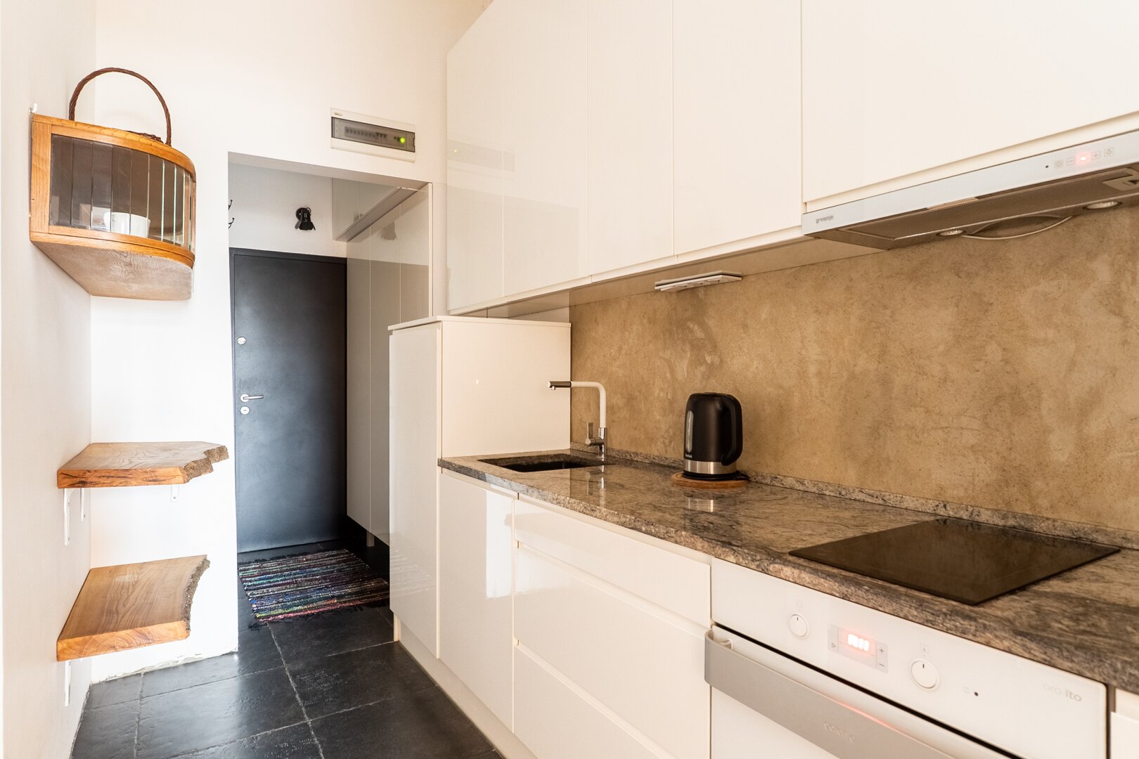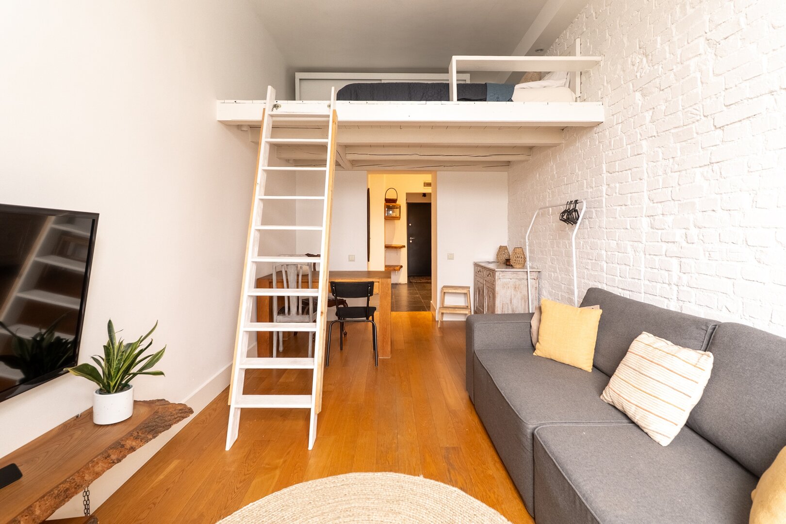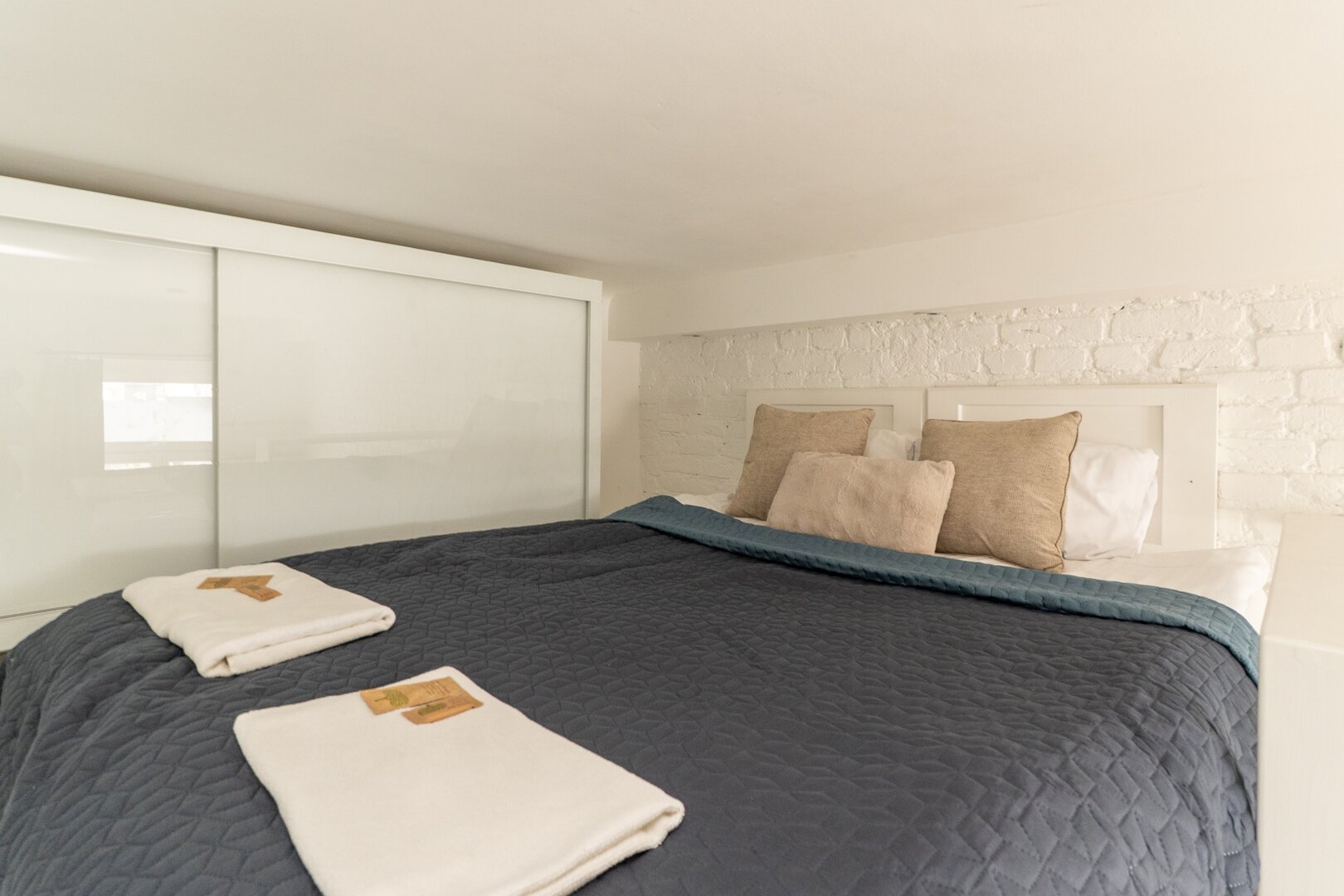 The apartment offers an unusual spatial arrangement: on the mezzanine there is a comfortable large mattress that will provide a cozy place to relax after a long day of exploring the city.