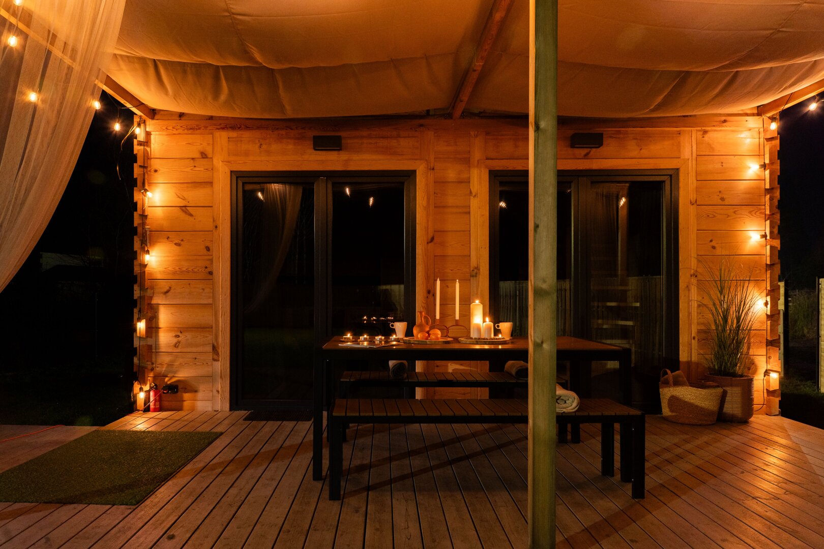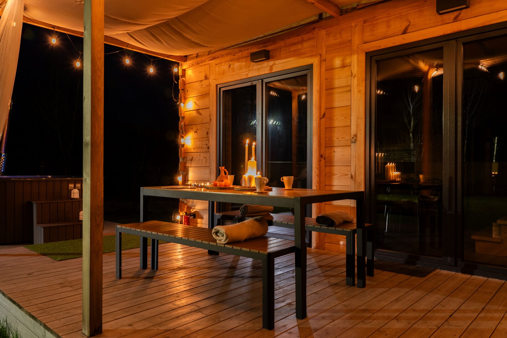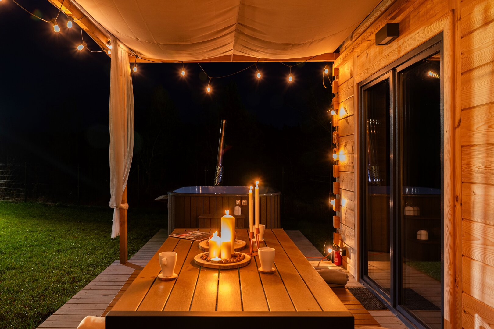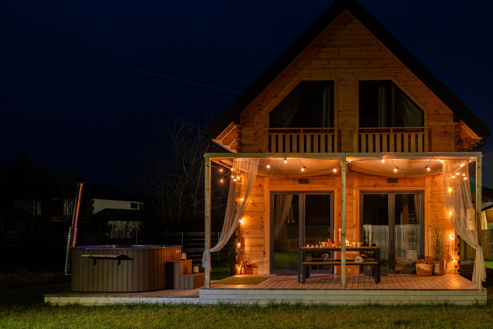 • Dodatkowe atrakcje: Taras z miejscem do grillowania oraz prywatną balią opalaną drewnem z funkcją jacuzzi