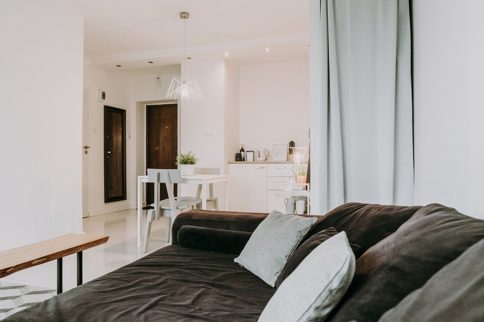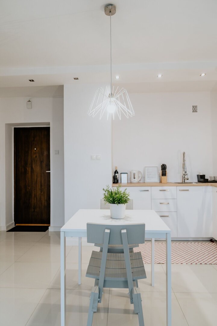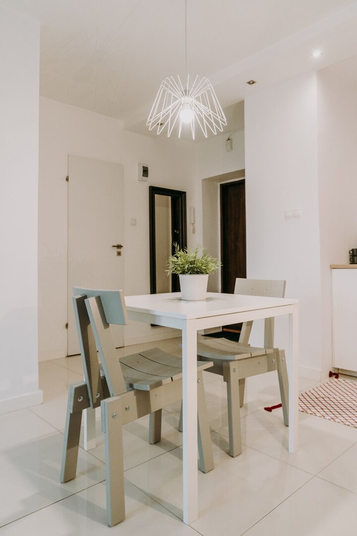 Stylowe mieszkanie w klimatycznej kamienicy na terenie Śródmieścia, tuż przy Starym Rynku. Wnętrze łączy styl retro z nowoczesnymi akcentami — wysokie sufity, duże okna i starannie dobrane detale tworzą elegancką, przytulną przestrzeń. Salon z aneksem kuc
