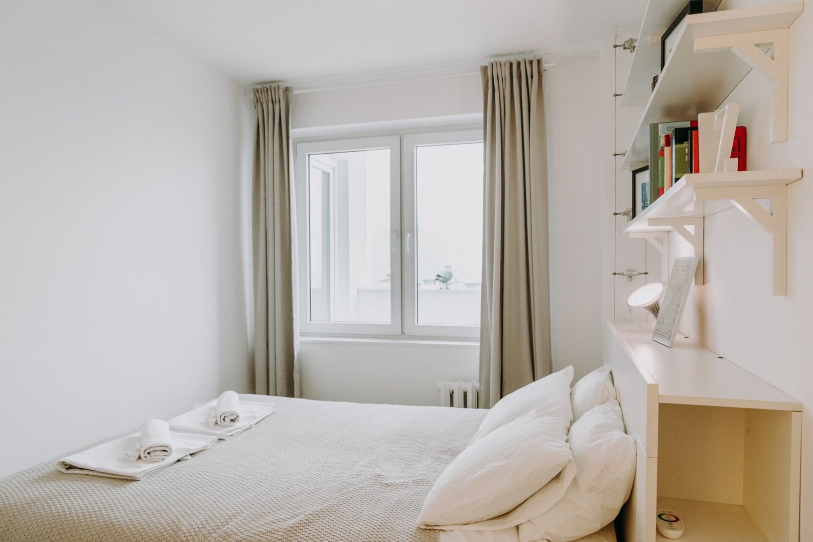Mieszkanie składa się z osobnej sypialni oraz salonu z aneksem kuchennym, co zapewnia komfortowy pobyt zarówno na krótsze, jak i dłuższe wizyty. Jasne wnętrze i funkcjonalny układ tworzą przyjemną, domową atmosferę, a lokalizacja przy Alejach Jerozolimskich umożliwia szybki dostęp do najważniejszych punktów miasta.