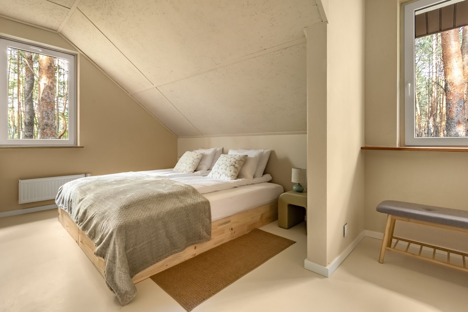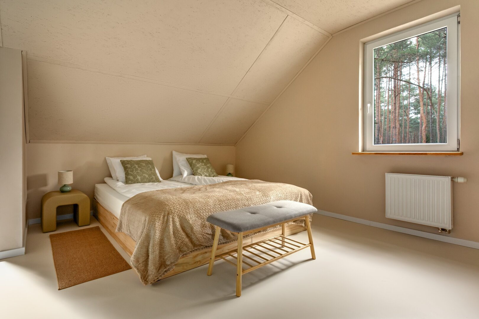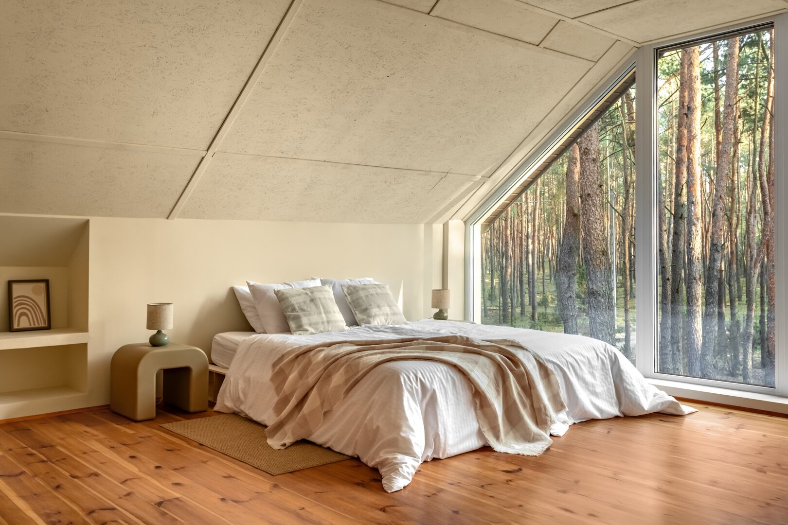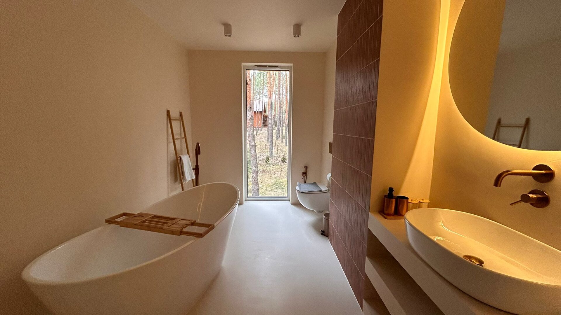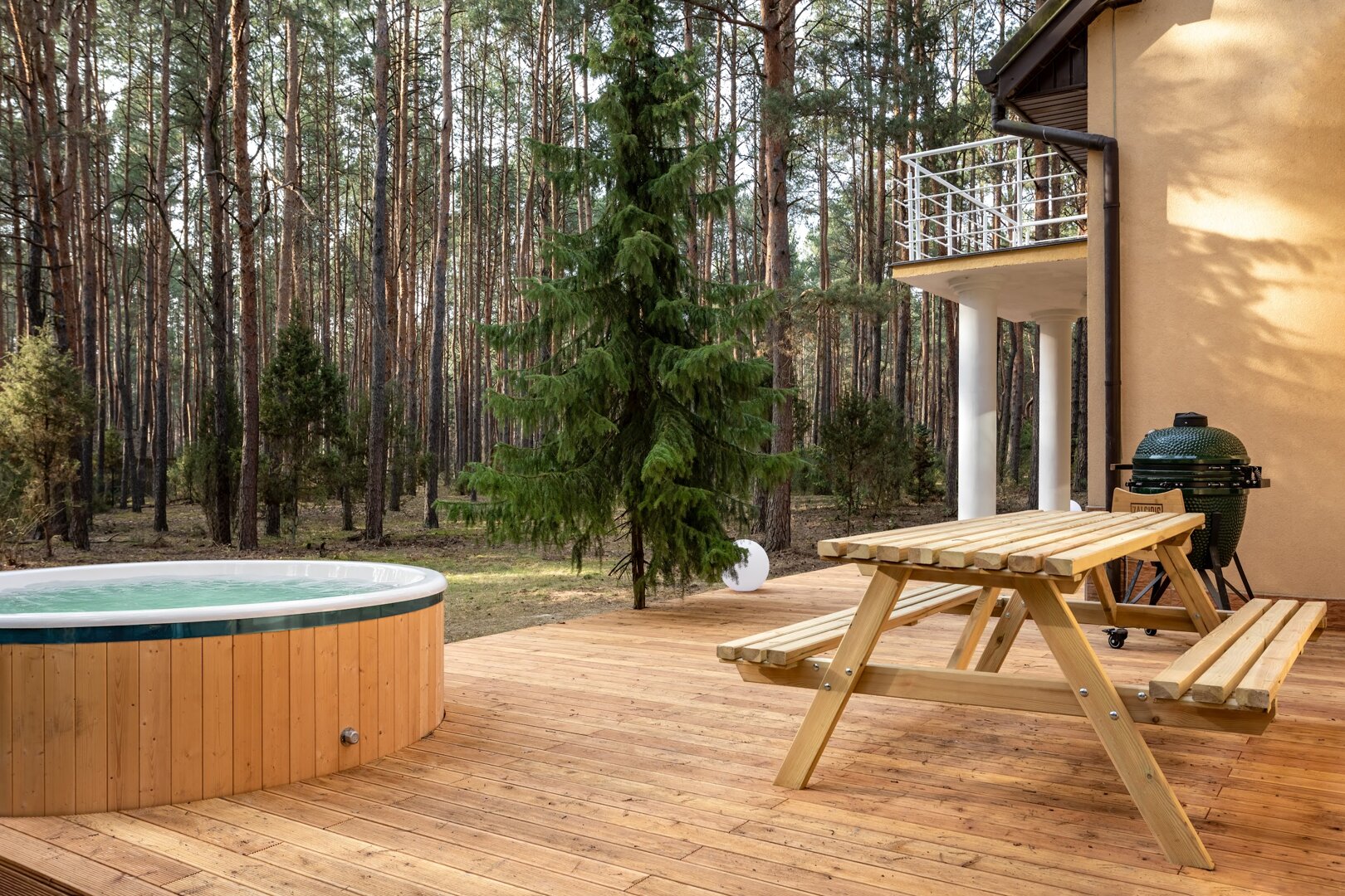 To przestrzeń idealna na warsztaty jogowe, wyjazdy rozwojowe, kameralne retreaty czy spokojne wyjazdy integracyjne. Duże przeszklenia otwierają wnętrze na las, a naturalne materiały i stonowana estetyka pomagają się wyciszyć. Tu dzień zaczyna się od kawy na tarasie i śpiewu ptaków, a kończy przy ciepłym świetle i rozmowach bez pośpiechu.