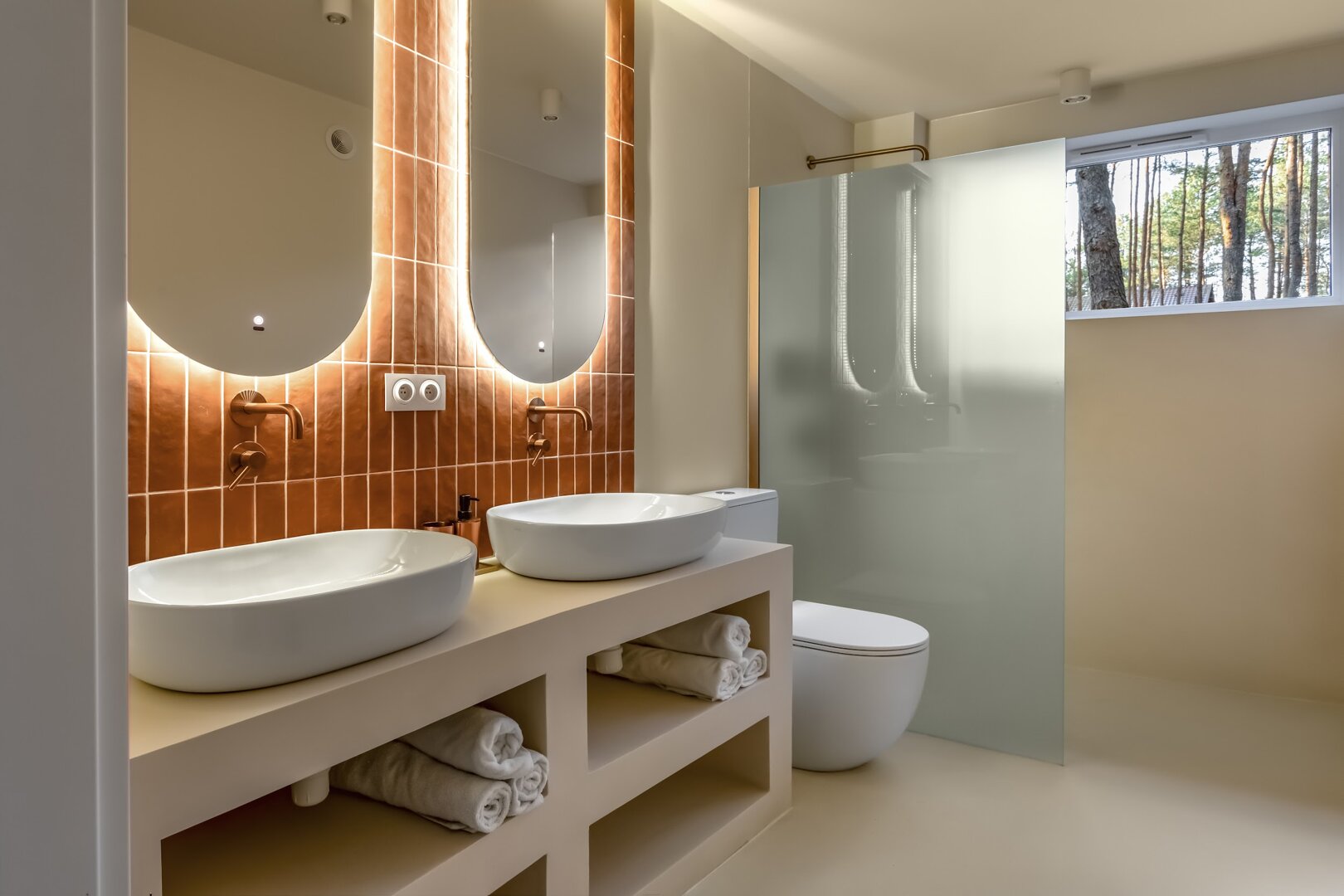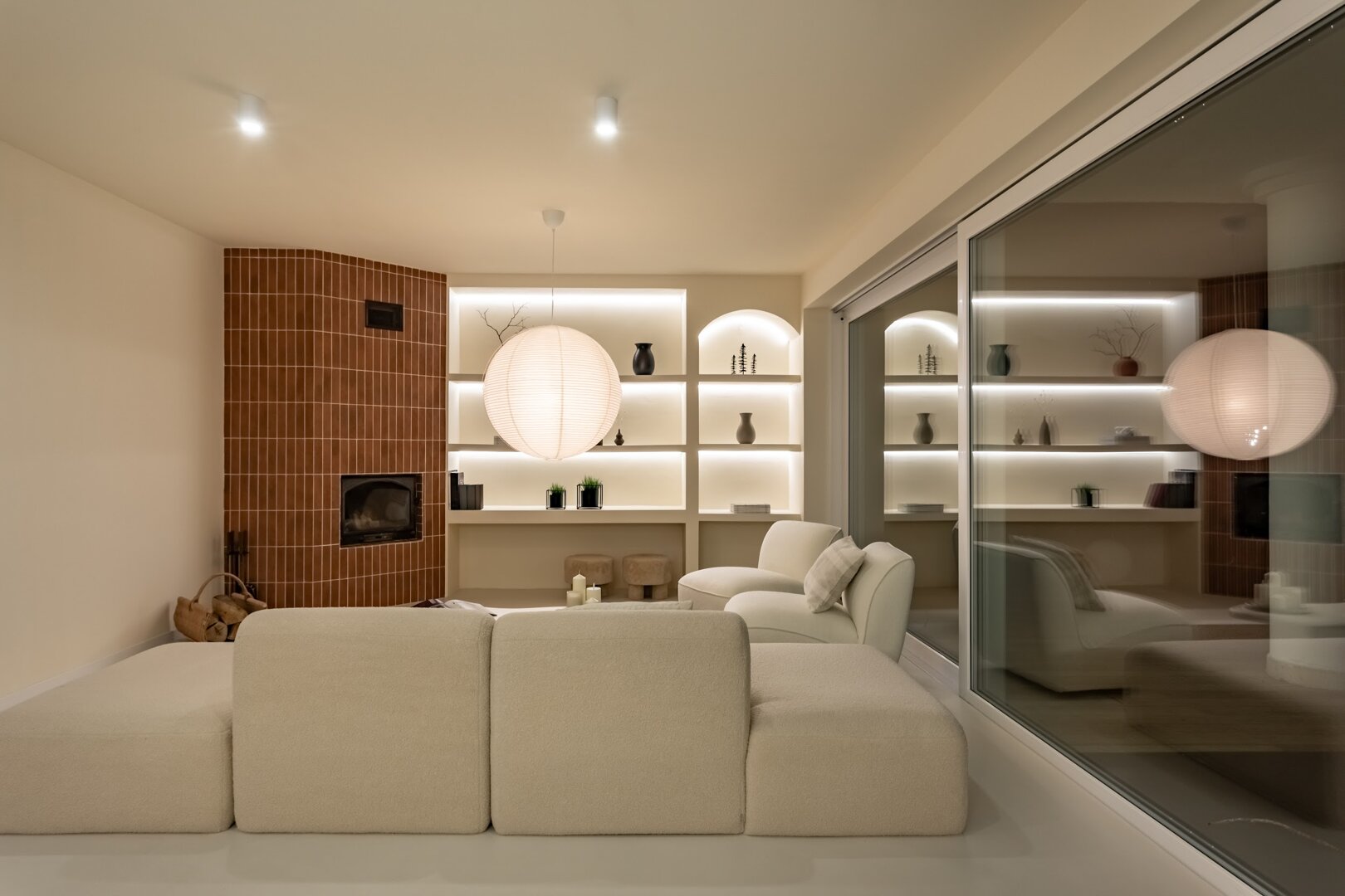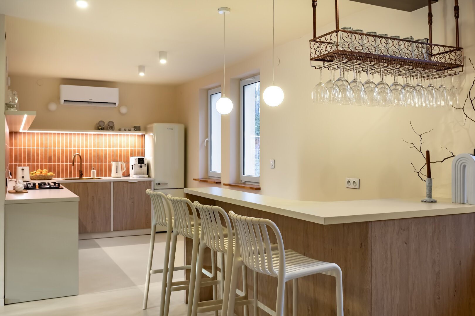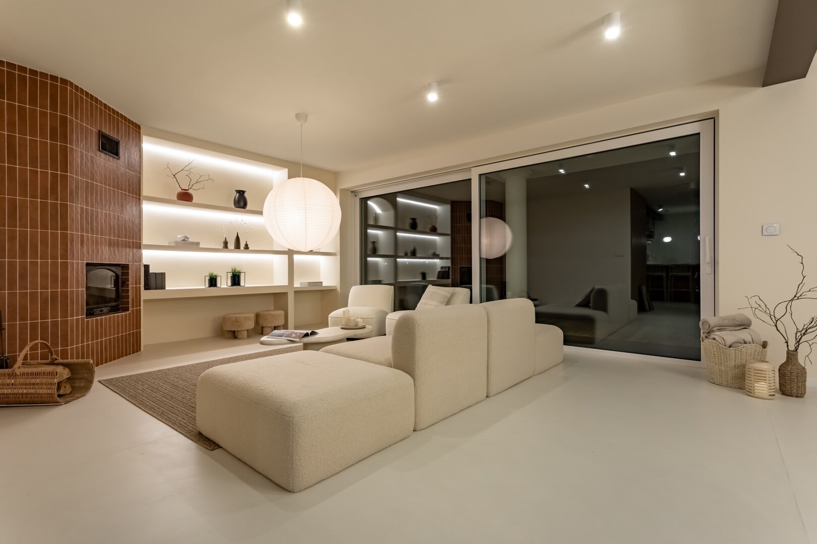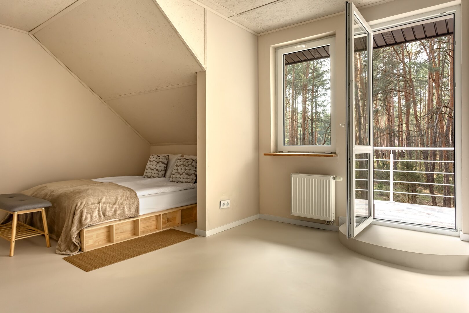 To przestrzeń idealna na warsztaty jogowe, wyjazdy rozwojowe, kameralne retreaty czy spokojne wyjazdy integracyjne. Duże przeszklenia otwierają wnętrze na las, a naturalne materiały i stonowana estetyka pomagają się wyciszyć. Tu dzień zaczyna się od kawy na tarasie i śpiewu ptaków, a kończy przy ciepłym świetle i rozmowach bez pośpiechu.